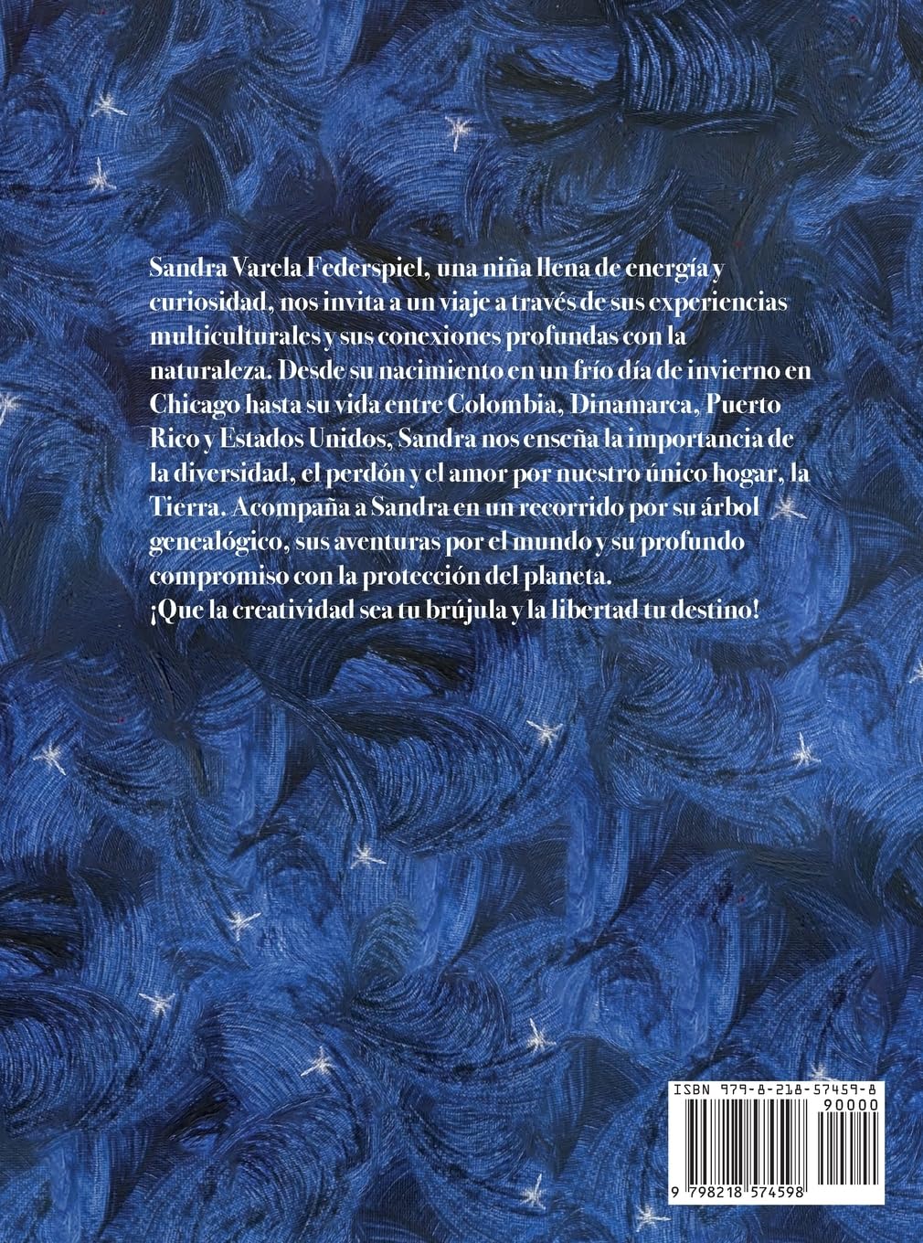 El cuento narra la vida de Sandra Varela Federspiel, una niña llena de energía que siempre busca aventuras. Nació en Chicago, Illinois, en un día frío de invierno, y su familia tiene raíces colombianas y danesas. A los cuatro años se mudó a Bogotá, Colombia, donde creció rodeada de amor familiar. Desde pequeña, ha disfrutado viajar y explorar la naturaleza, amando tanto los bosques como el mar. Actualmente vive en Puerto Rico, con un esposo costarricense y un hijo puertorriqueño, y tiene amigos de todo el mundo. A través de su historia, Sandra reflexiona sobre la diversidad cultural y la importancia de cuidar el planeta, sintiéndose ciudadana del mundo y recordando que todos compartimos un mismo hogar. El libro también tiene actividades para hacer.