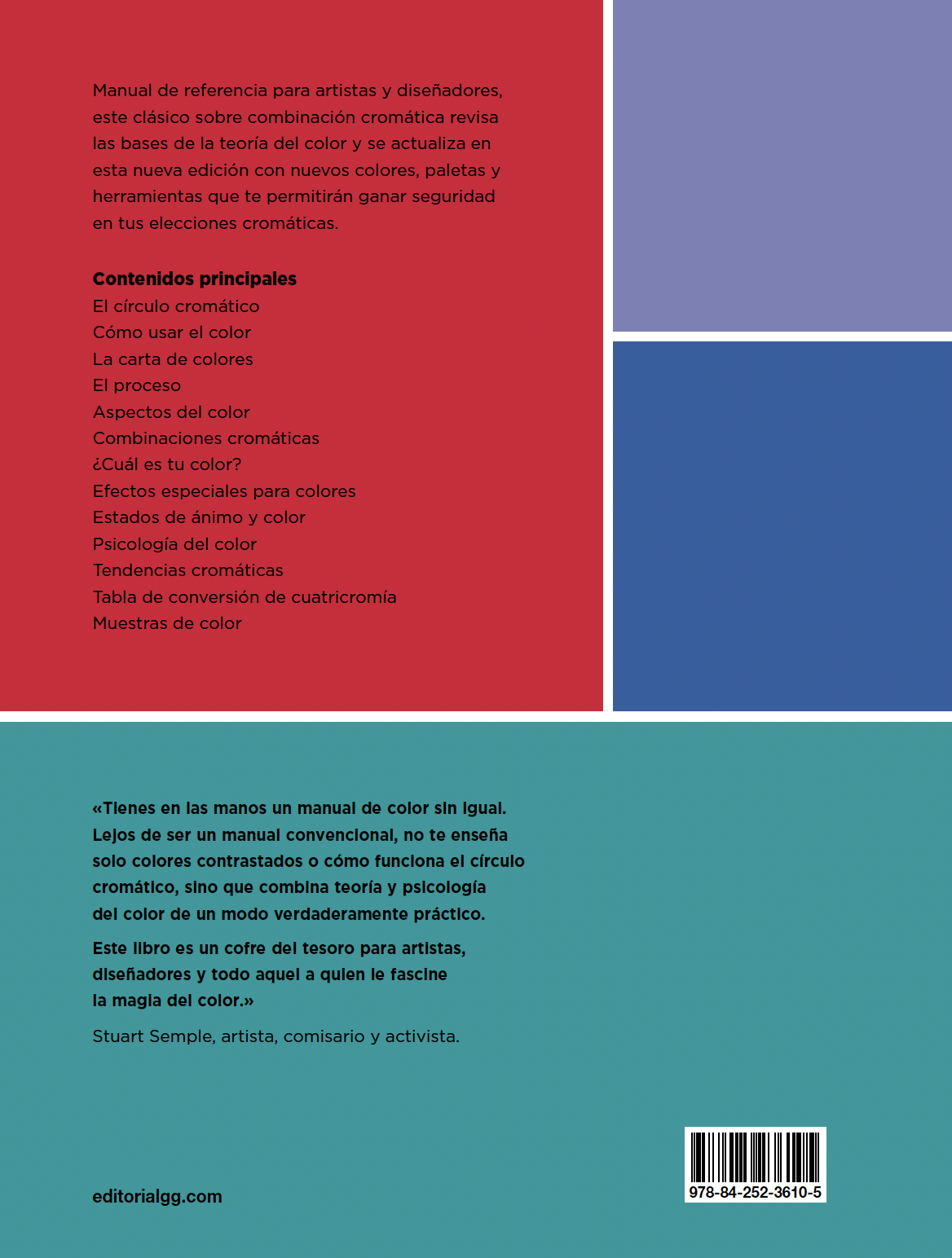 Manual de referencia para artistas y diseñadores, este clásico sobre combinación cromática revisa las bases de la teoría del color y se actualiza en esta nueva edición con nuevos colores, paletas y herramientas que te permitirán ganar seguridad en tus elecciones cromáticas.