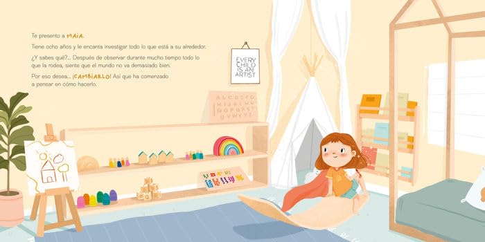 Maia, la protagonista del cuento, observa que la sociedad en la que vivimos no nos ayuda a ser felices ni a vivir con coherencia. El día a día nos absorbe y siente que algo no funciona. Entonces decide que hará todo lo posible para cambiar el mundo, convirtiéndose así en una superheroína, a pesar de no tener capa y antifaz.