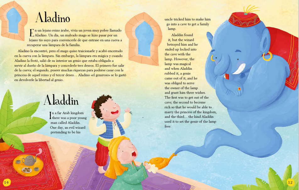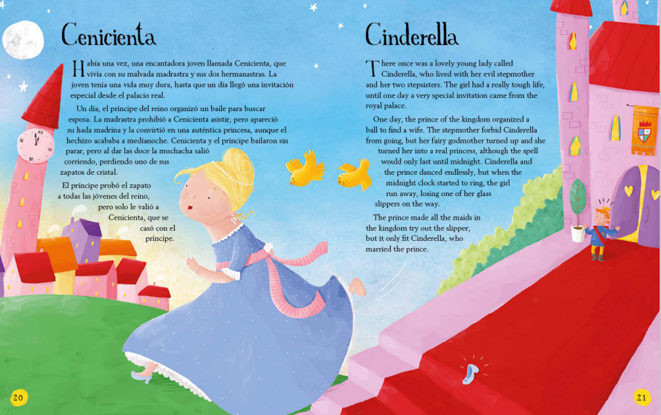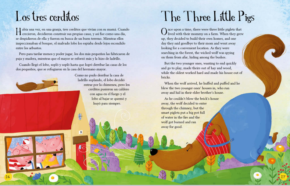 Si el primer conocimiento lingüístico se adquiere a través de los cuentos clásicos, para practicar con una lengua extranjera no debería ser diferente. Por eso, presentamos este volumen con una selección de los cuentos clásicos más conocidos y entrañables en versión bilingüe español-inglés. El libro desarrolla 15 cuentos en una estructura comparada de doble página con el texto en español y su equivalente en inglés ilustrados a todo color. La versión presta atención a la edad de los pequeños lectores, ofreciendo frases cortas y sencillas y un vocabulario básico con el que comenzar a aprender un idioma de la manera más agradable: a través de sus personajes favoritos.