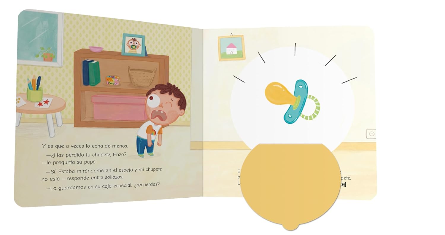 Una divertida historia, basada en el método Montessori, para aprender a dejar el chupete y descubrir en cada solapa… ¡que todos podemos dejar el chupete! El pequeño Enzo cada vez utiliza menos el chupete y lo guarda en su caja especial, pero hay momentos en los que lo sigue necesitando… ¡Mi chupe! ¿Dónde está? ¿Logrará dejarlo en su cajita hasta que ya no lo necesite más?¡Un cuento interactivo CON SOLAPAS para acompañar a los niños y niñas en el proceso de dejar el chupete de manera natural y respetuosa!