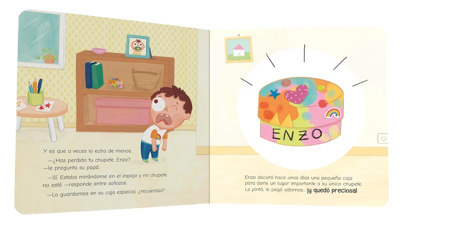 A través de una historia tierna y divertida, los pequeños lectores acompañarán a Enzo en su camino para usar cada vez menos el chupete. Con la ayuda de su caja especial, Enzo va aprendiendo a dejarlo poco a poco, aunque todavía lo necesita en algunos momentos.