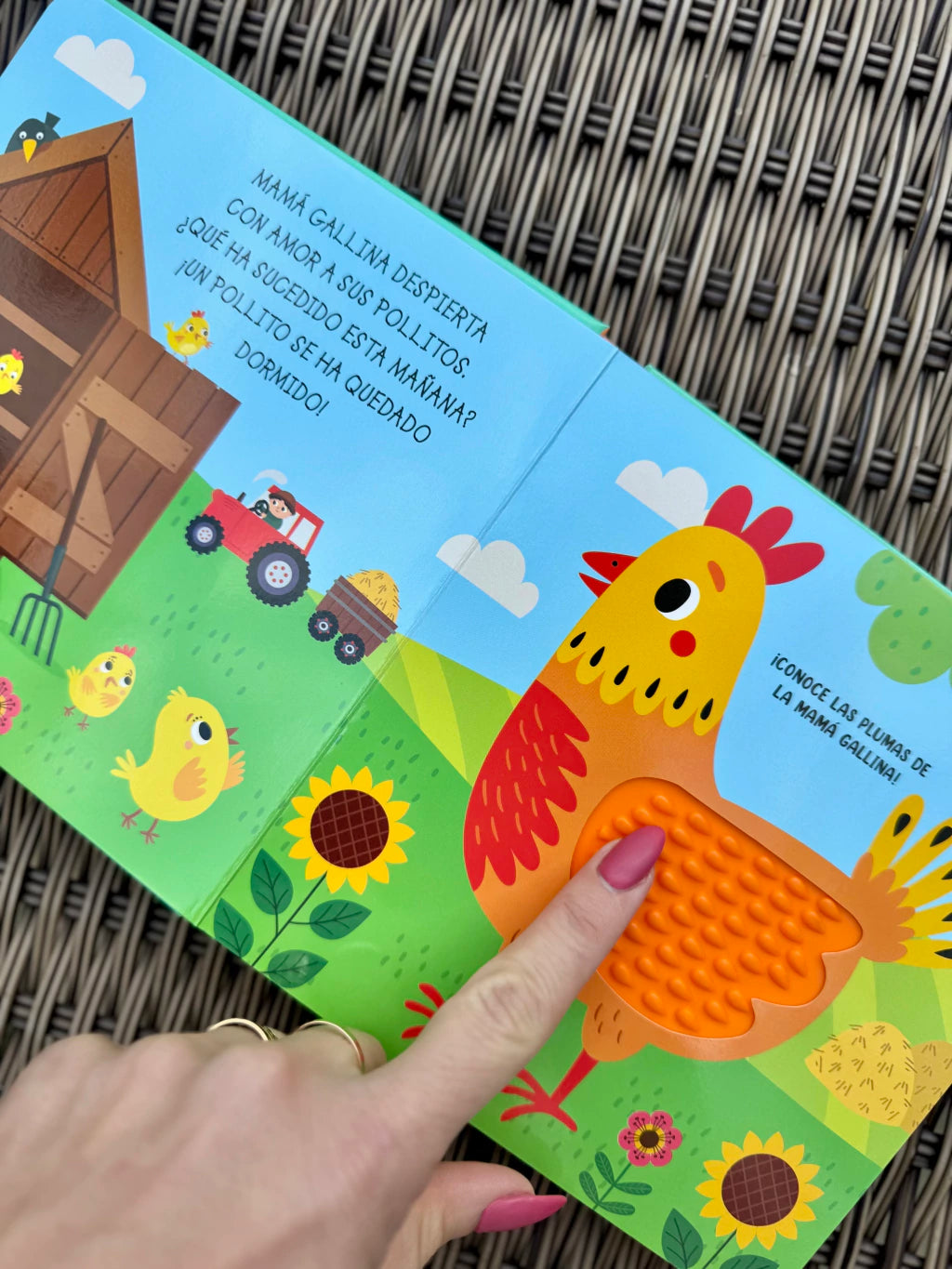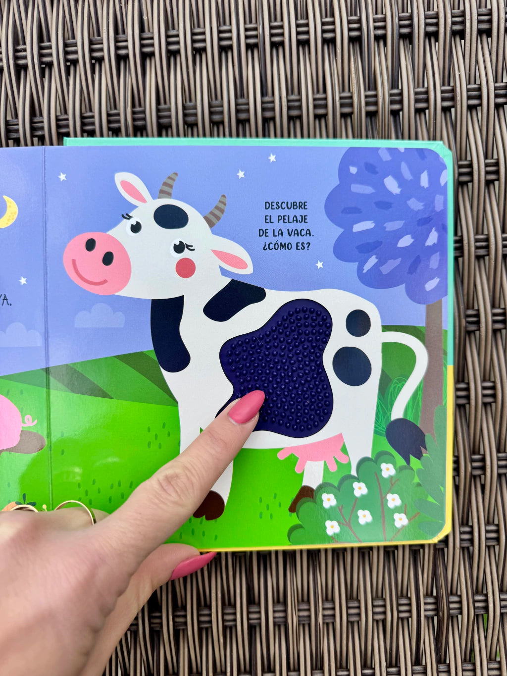 GRANJA - SAFARI DE TEXTURAS La colección de libros de cartón con texturas de silicona es simplemente encantadora. Cada libro presenta ilustraciones maravillosas y llamativas que se complementan con texturas táctiles que atraen la atención de los niños. Son perfectos para estimular la imaginación y el aprendizaje temprano. La construcción duradera de los libros de cartón los convierte en una excelente opción para manos pequeñas y garantiza horas de diversión y exploración.