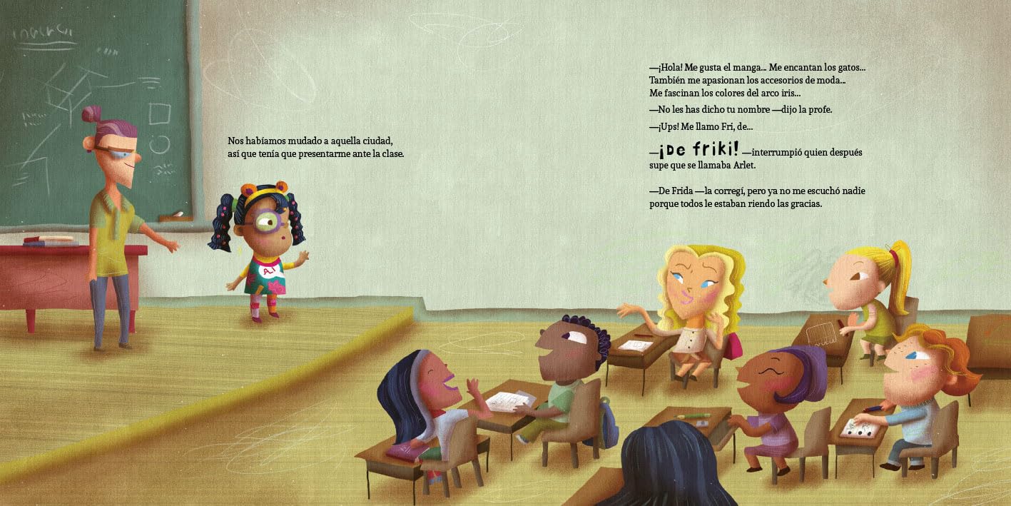 Frida tiene que empezar de cero en una nueva escuela. Como no sigue las modas ni los gustos del resto de las chicas de la clase, la llaman friki. Arlet, la chica más popular de todas, intenta transformar a Frida para que sea igual que el resto, pero… ¿Realmente es eso lo que la hace feliz?