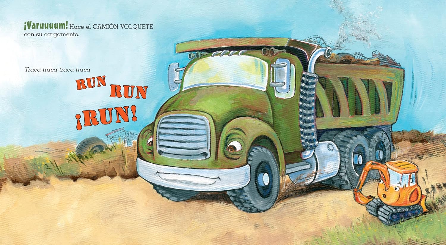 A toda máquina vienen rodando los GRANDES CAMIONES de construcción. Bum-bum-bum pum-pum-pum Bip Bip ¡Booop!