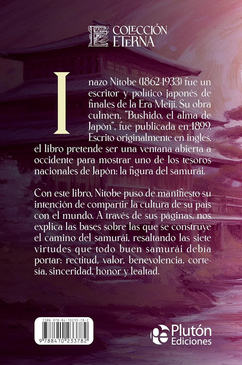 Inazo Nitobe (1862-1933) fue un escritor y político japonés de finales de la Era Meiji. Su obra culmen, "Bushido, el alma de Japón", fue publicada en 1899. Escrito originalmente en inglés, el libro pretende ser una ventana abierta a occidente para mostrar uno de los tesoros nacionales de Japón: la figura del samurái. Con este libro, Nitobe puso de manifiesto su intención de compartir la cultura de su país con el mundo. A través de sus páginas, nos explica las bases sobre las que se construye el camino del samurái, resaltando las siete virtudes que todo buen samurái debía portar: rectitud, valor, benevolencia, cortesía, sinceridad, honor y lealtad.